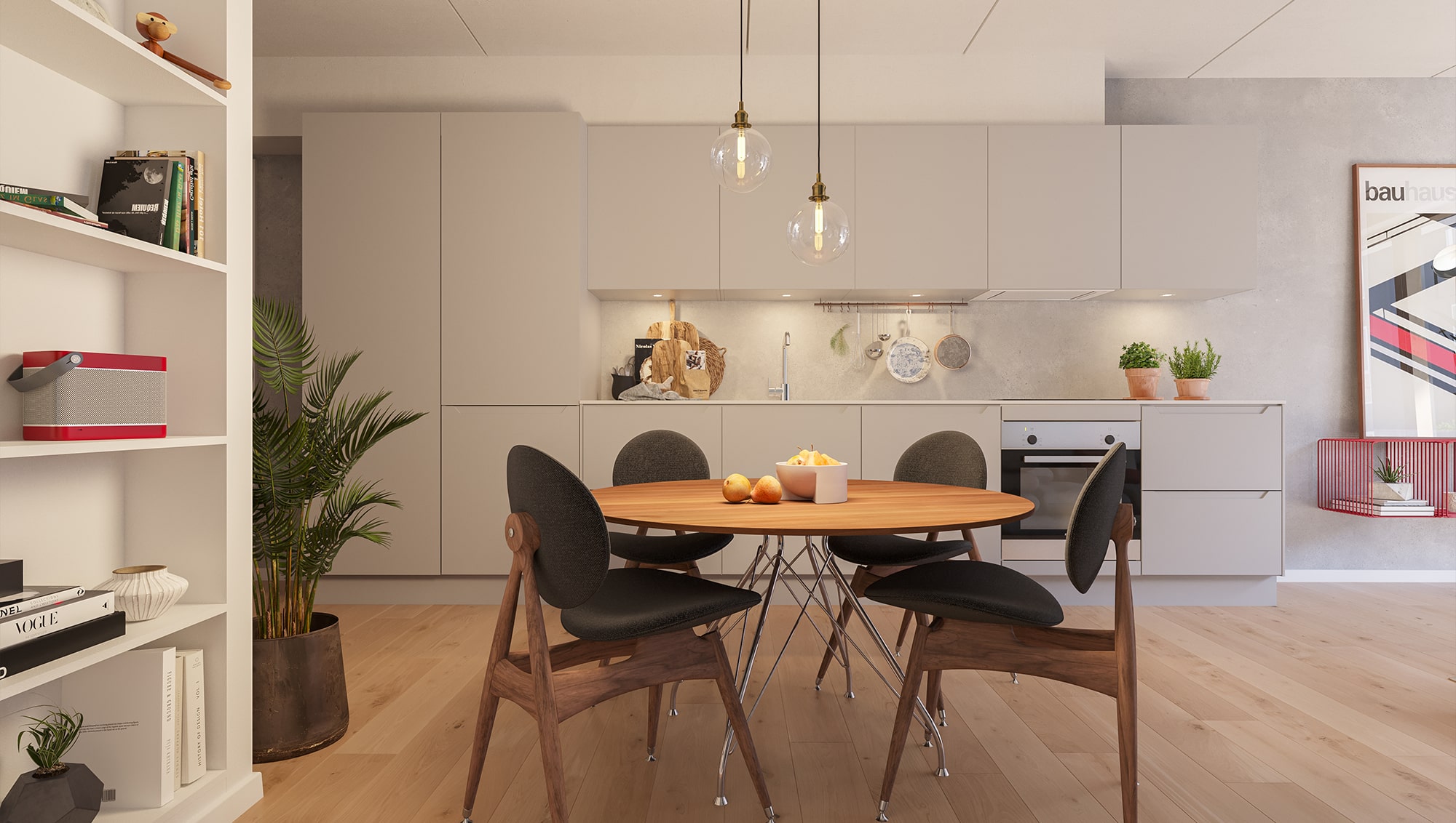 Du bestemmer selv, om du vil have 2-, 3- eller 4-værelser. Alle lejlighederne har lyse trægulve, gulvvarme og indbyggede skabe med små, lækre opbevaringsløsninger, der sparer plads og udnytter hver en kvadratmeter.